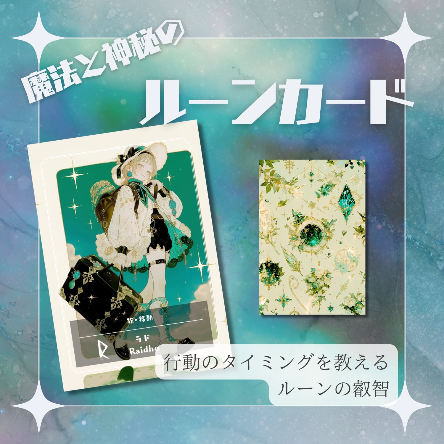 エメラルドグリーンの光の中に息づく24の精霊たちが、あなたの直感と共鳴し、運命を鮮やかに照らし出します。